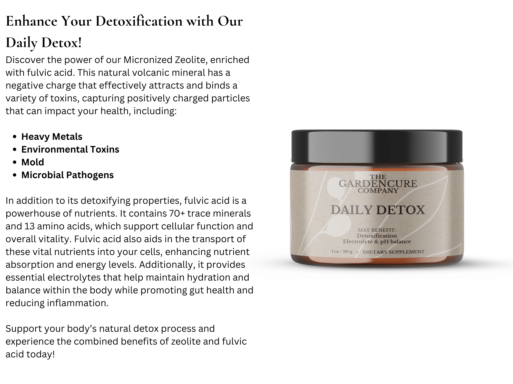 - 3 Jars of Daily Detox Binder: Our unique zeolite and fulvic acid formula to bind and remove toxins effectively.