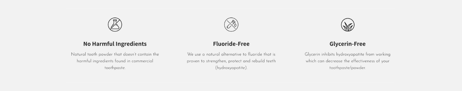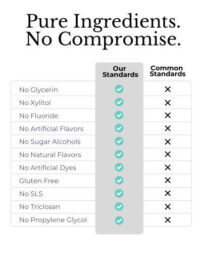 Our formula is made with hydroxyapatite and without glycerin to help the teeth absorb as much as possible for maximized remineralization benefits.